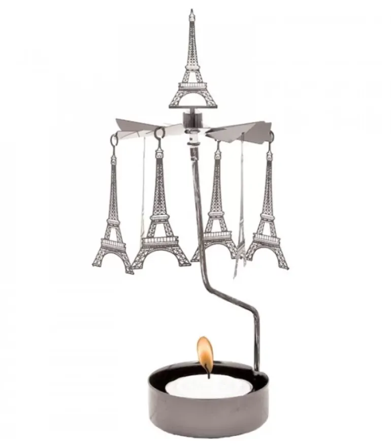 Bougeoir De Table Tour Eiffel En Metal Chrome.