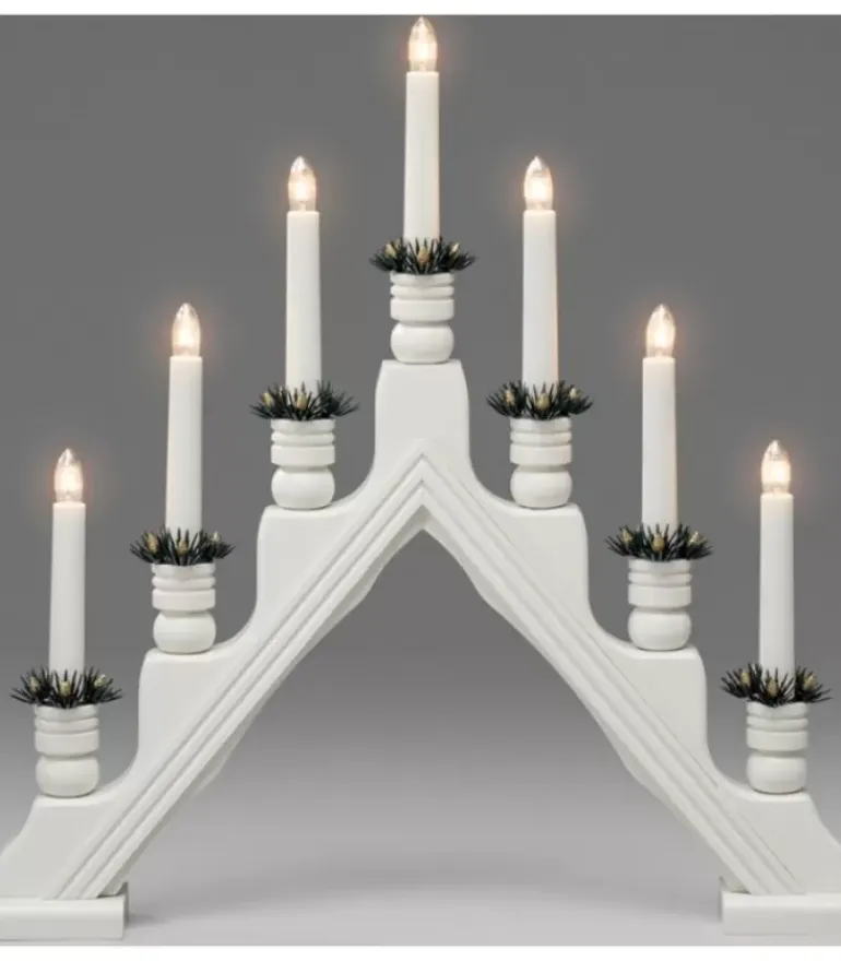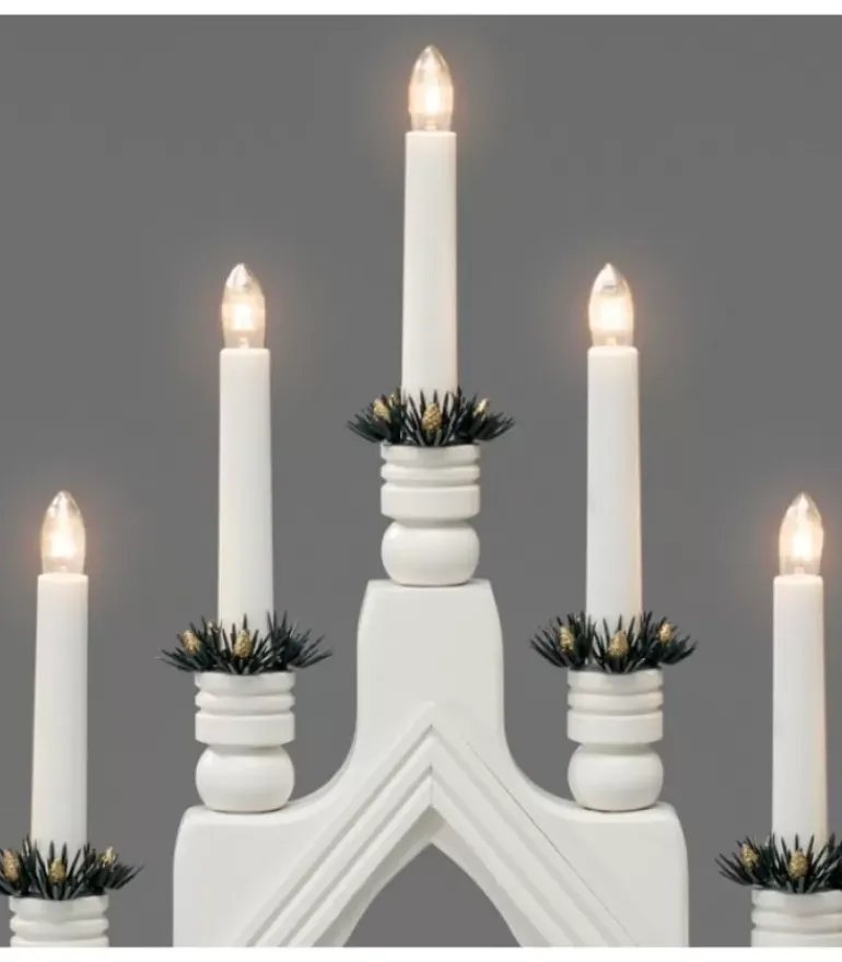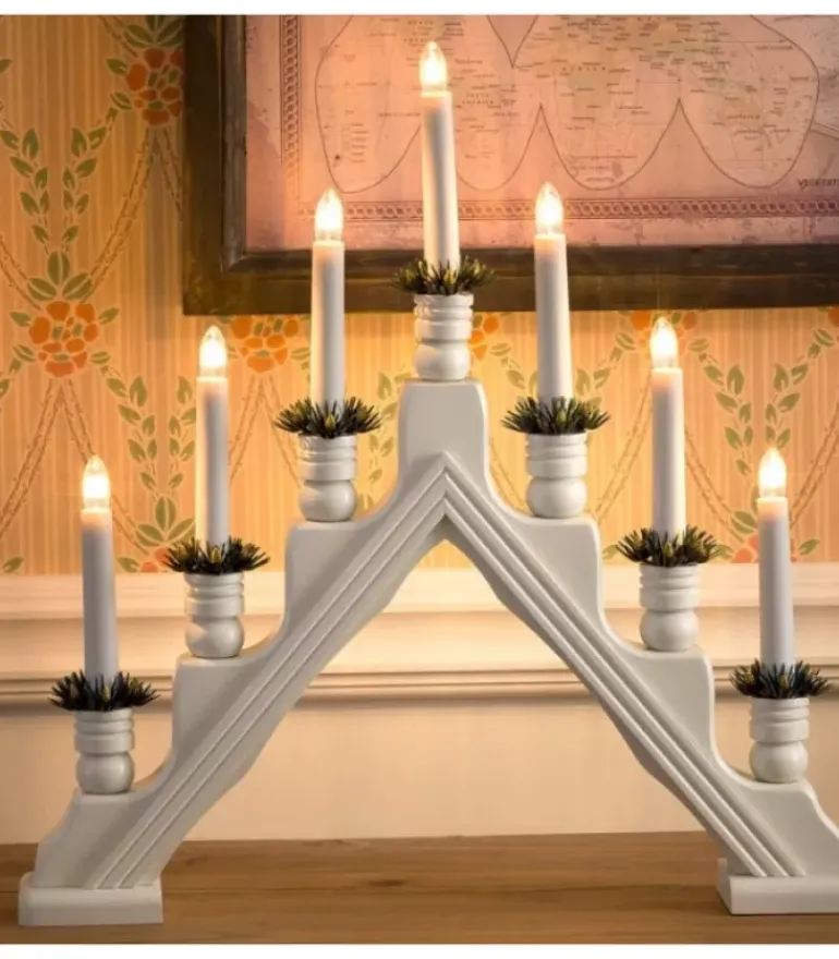 Chandelier Pyramide A Bougie Electrique Avec Décorations, Couleur Blanc.