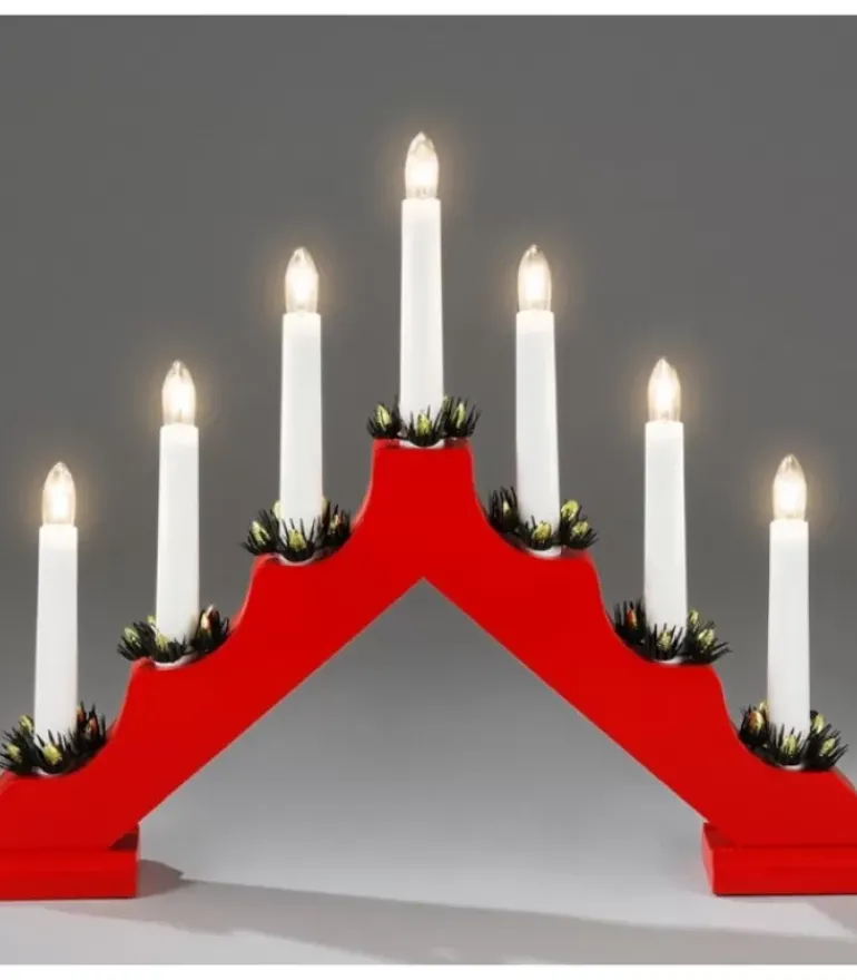 Chandelier De Noël Pyramide En Bois A Bougie Electrique, Couleur Rouge.