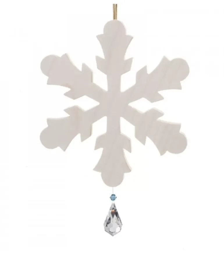Décoration Pour Sapin, Grand Flocon De Neige En Bois D’Erable Avec Cristal Swarovski.