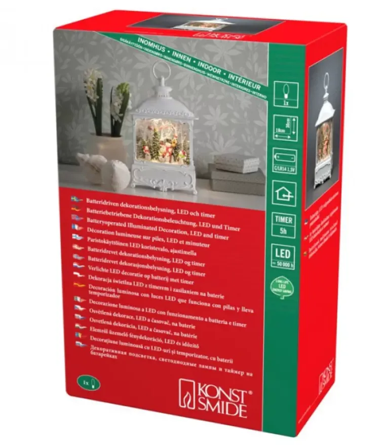 Grande Lanterne De Noël A Eau, 4 Bonshommes De Neige Avec Oiseaux, Couleur Blanc Antique, Hauteur 30 Cm.