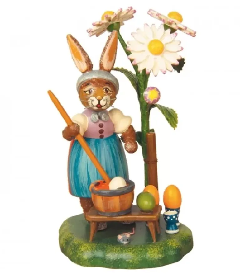 Figurine Lapin De Paques Peignant Des Oeufs A L’Ombre D’Une Marguerite.