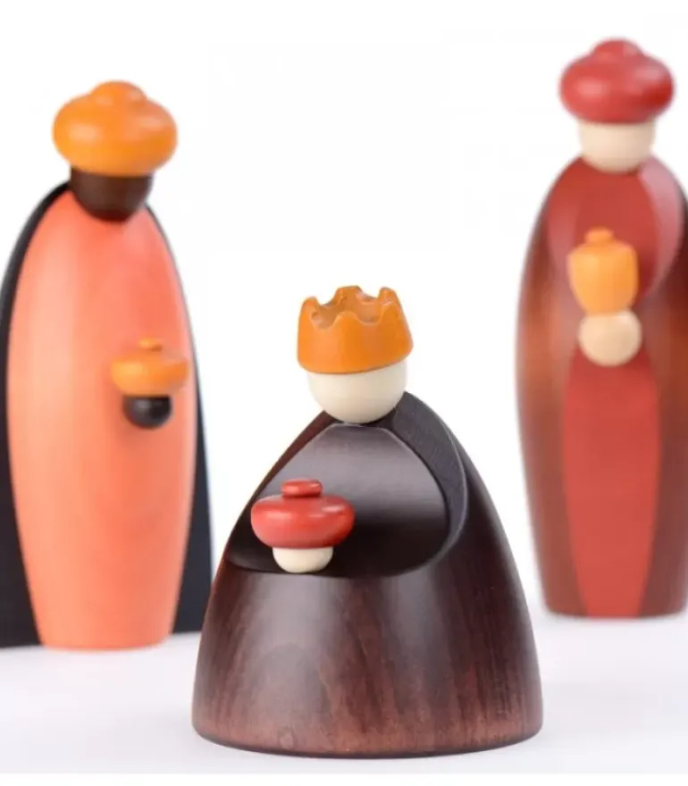 Personnages Crèche De Noël En Bois Peint.