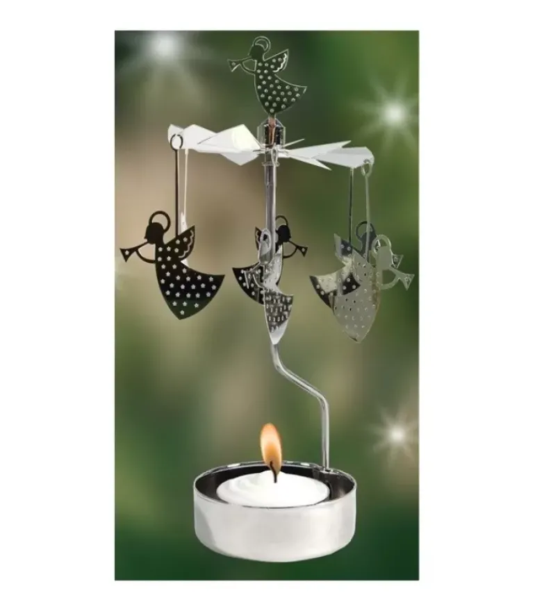 Photophore De Noël Anges Et Trompettes En Metal Chrome.