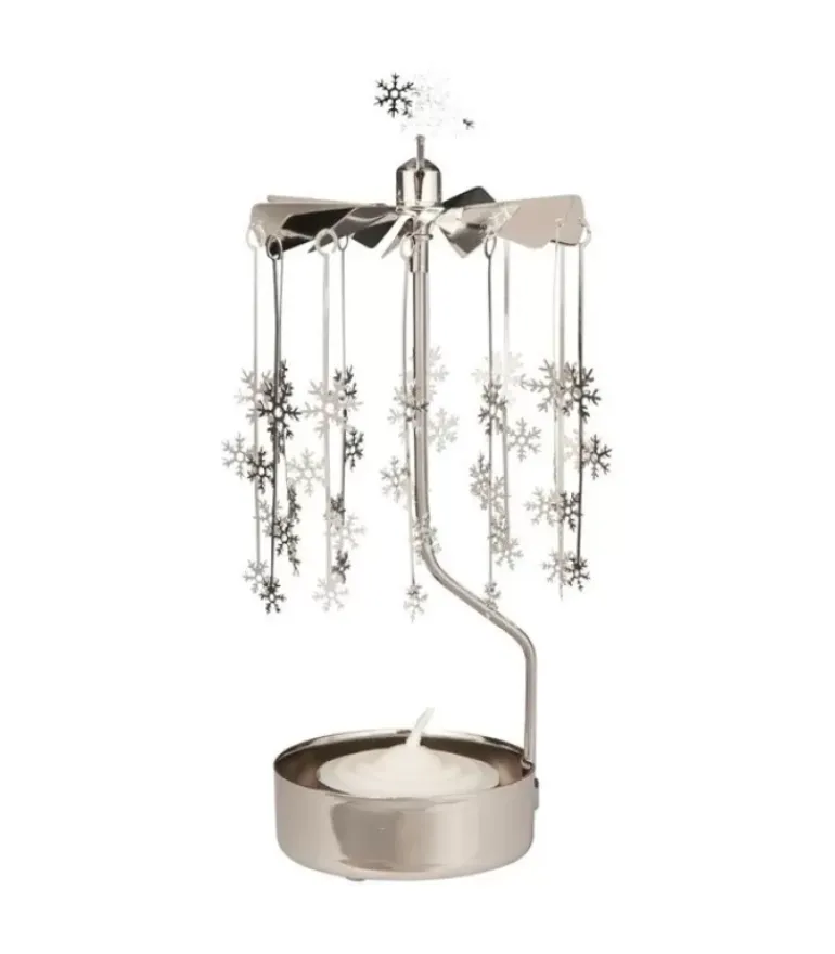Photophore De Noël Mini-Flocons De Neige En Metal Chrome.