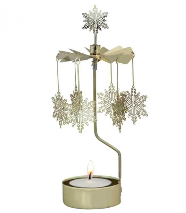 Bougeoir De Table Avec 6 Flocons Couleur Dore.