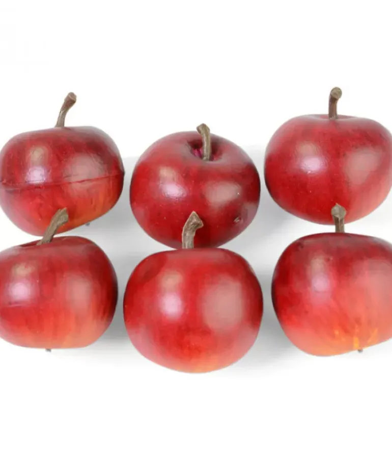 Lot De 6 Pommes Décoratives Rouges Fonce De Diametre 8 Cm.