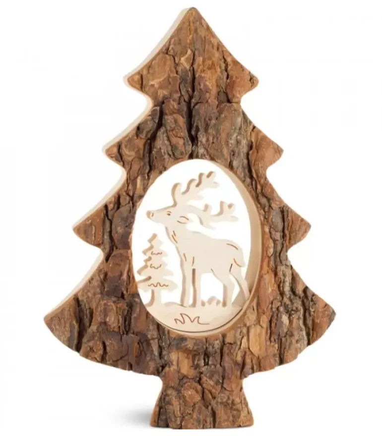Sapin En Bois Découpe Dans De L’Ecorce De Rondin De Bois.
