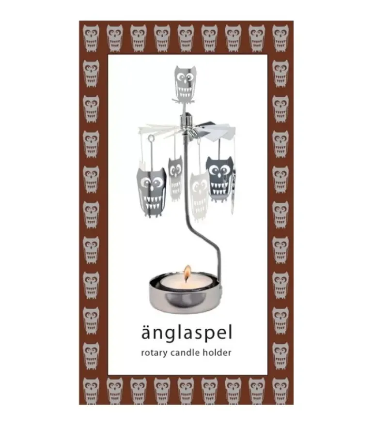 Bougeoir Carrousel Chouette En Metal Chrome.