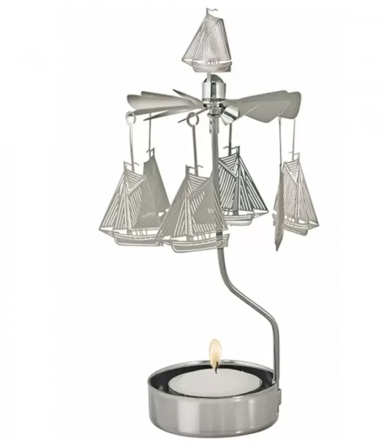 Bougeoir Carrousel Voilier En Metal Chrome.