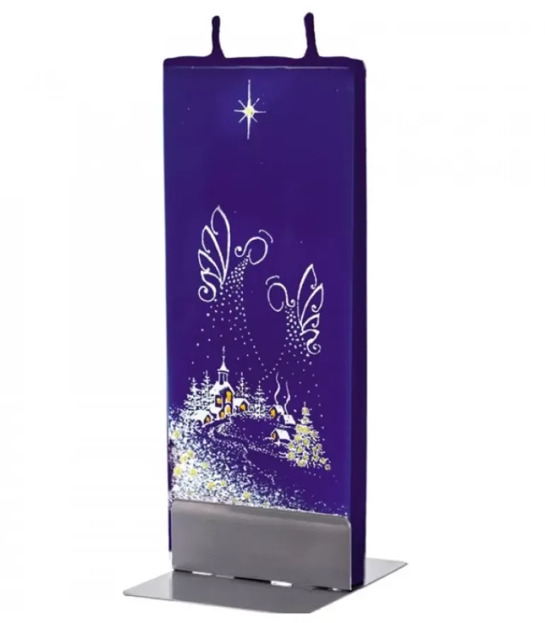 Bougie Décorative Double Meche, Motif Anges Et Village.