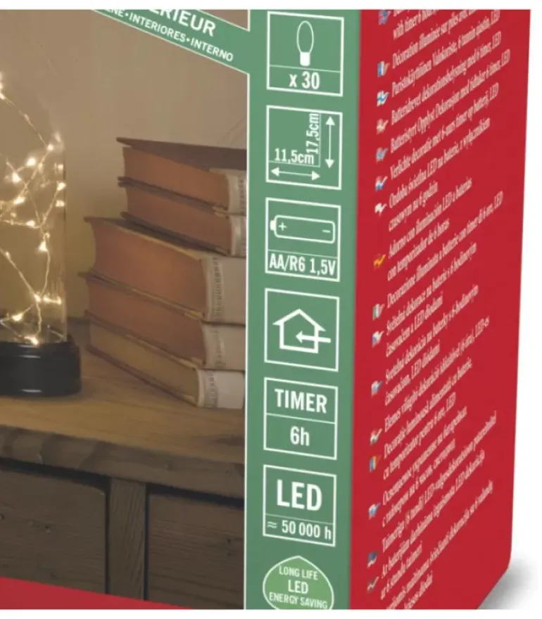 Boule En Verre Décorative Avec Fil Couleur Argent Torsade, 30 Diodes Led Couleur Ambrees, Hauteur 17,5 Cm.