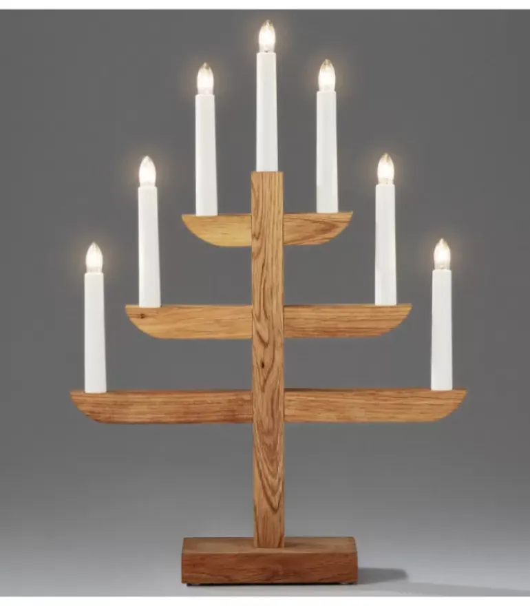 Chandelier De Noël 7 Ampoules, En Bois De Chene Naturel Huile.