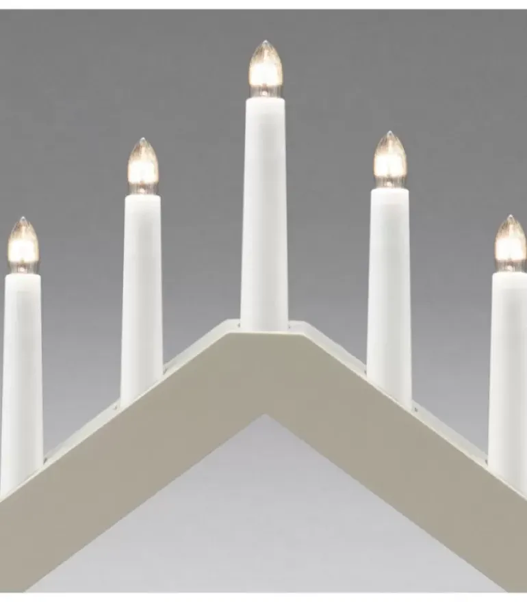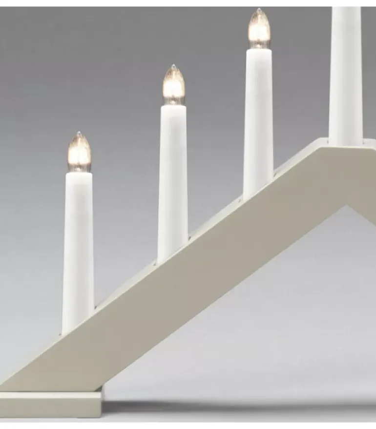 Etoile Lumineuse Electrique 5 Branches En Papier, Blanche, Sur Pied Blanc, 46 Cm