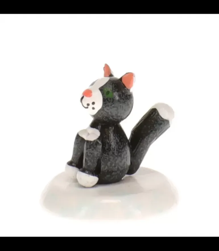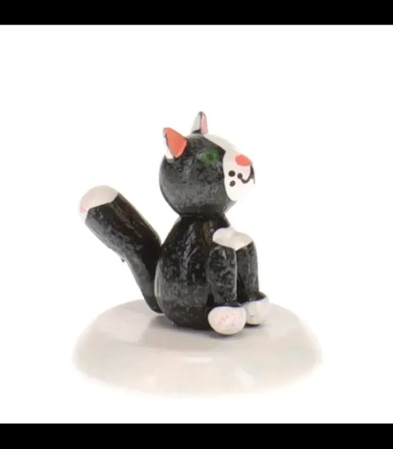 Petit Chat Noir Avec Des Taches Blanches. La Petite Mascotte Du Village De Noël.