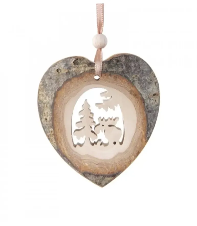 Coeur A Suspendre Avec Motif Elan Cisele Dans L’Aubier.