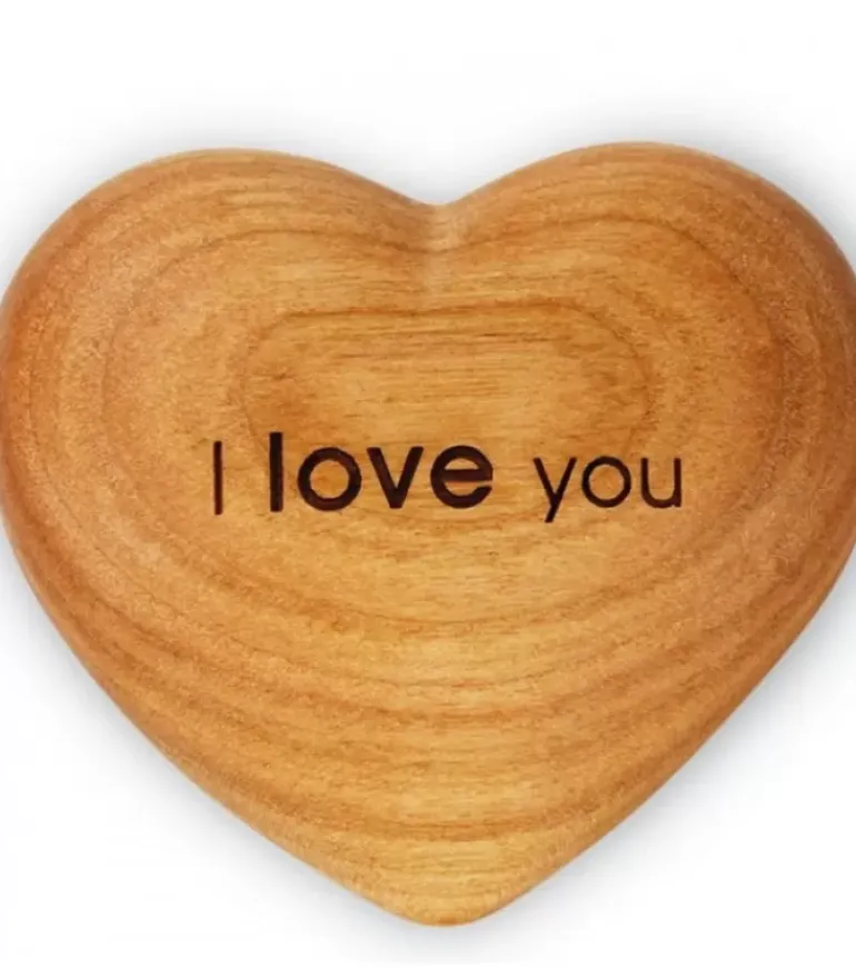 Coeur En Bois Poli Avec Texte Grave « I Love You »
