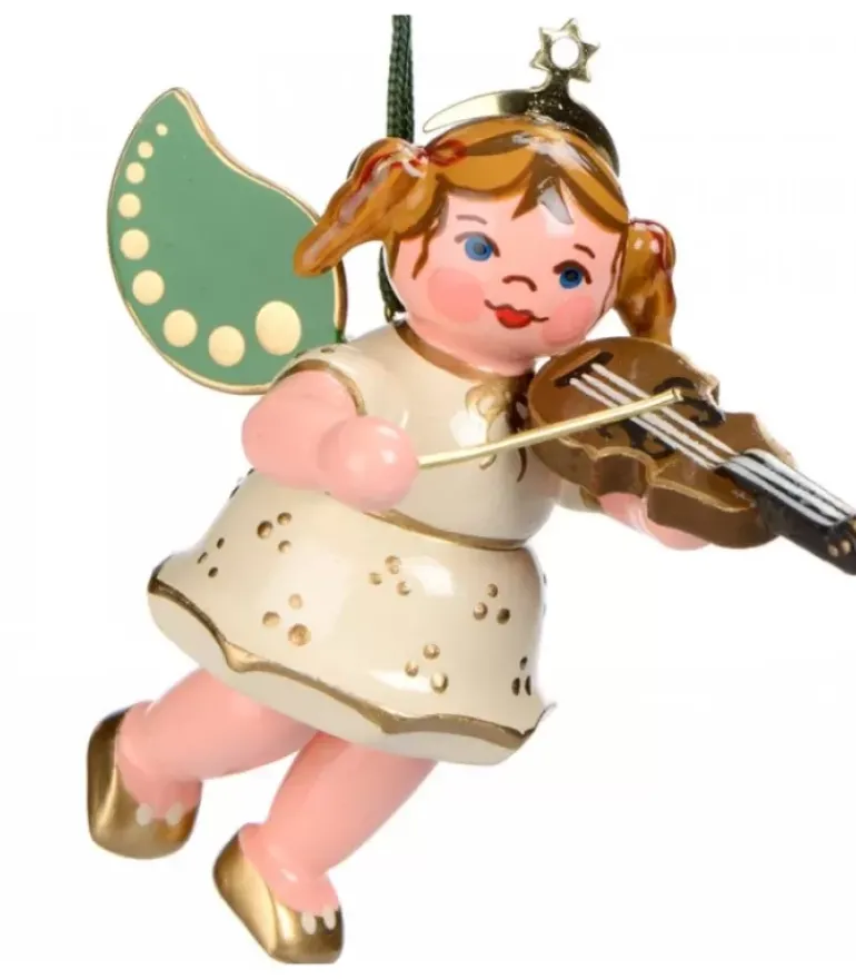 Ange Pour Sapin De Noël En Bois Peint Avec Violon.