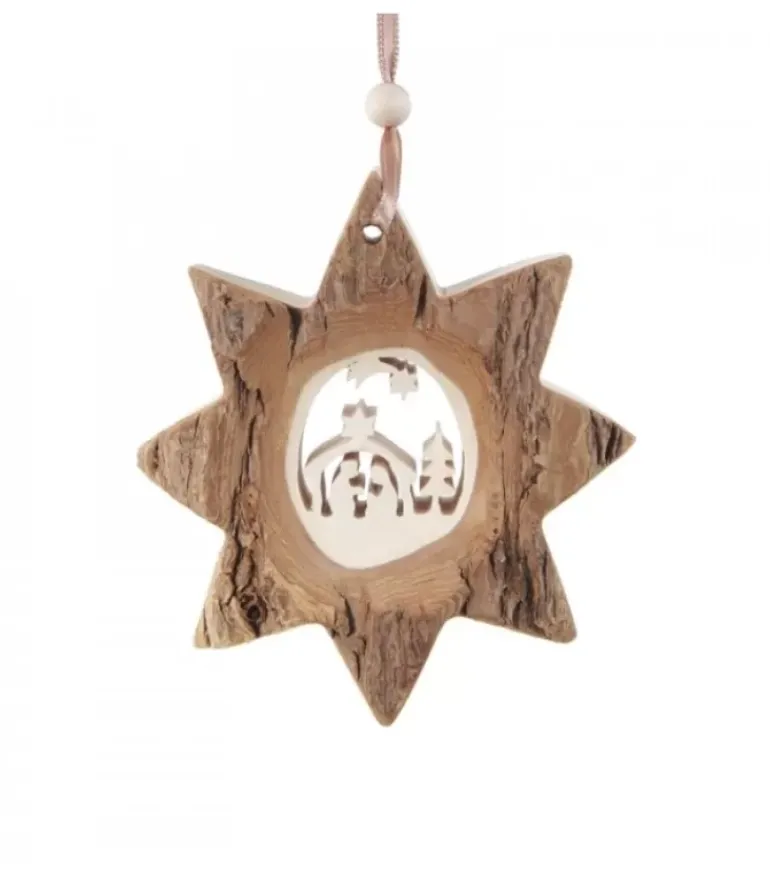Motif Crèche Et Etoile De Filante Ciselee Dans L’Aubier.