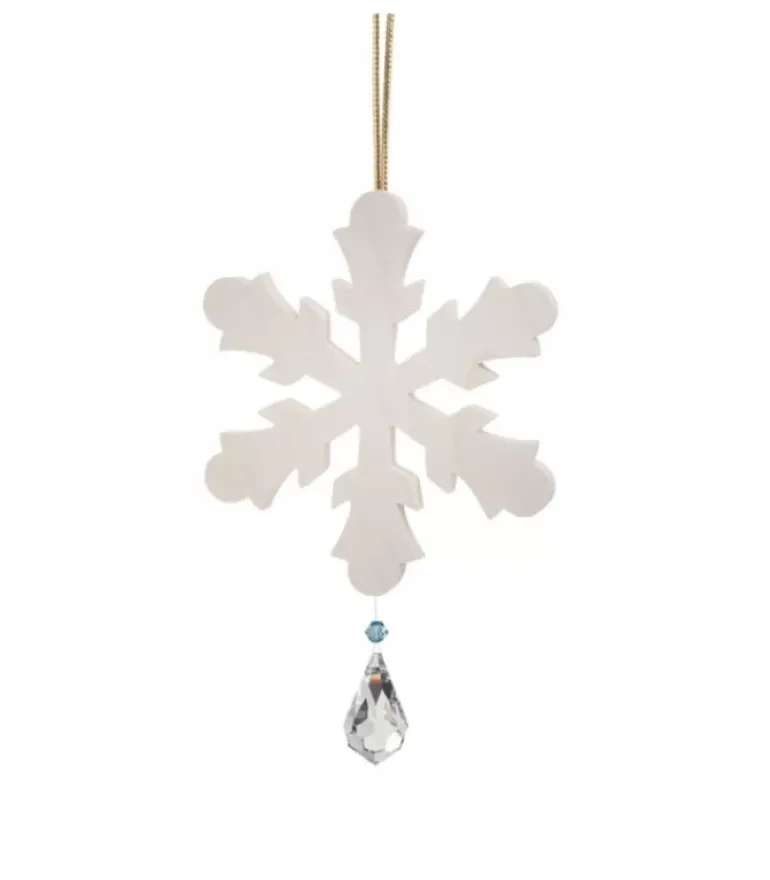 Décoration Pour Sapin, Flocon De Neige En Bois D’Erable Avec Cristal Swarovski.