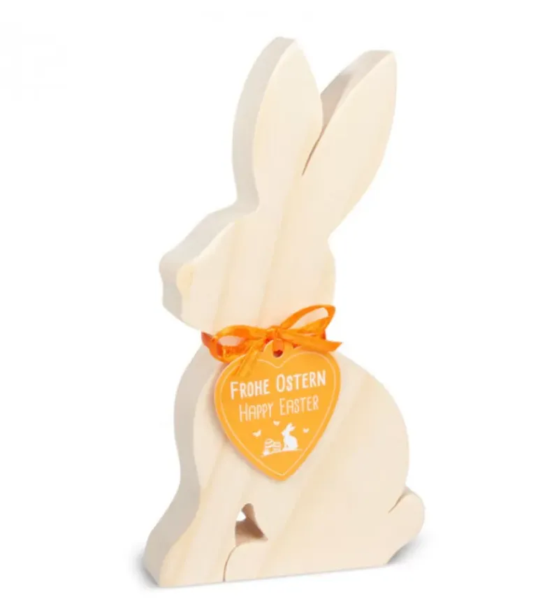 Lapin En Bois En Position Assise, 15 Cm.