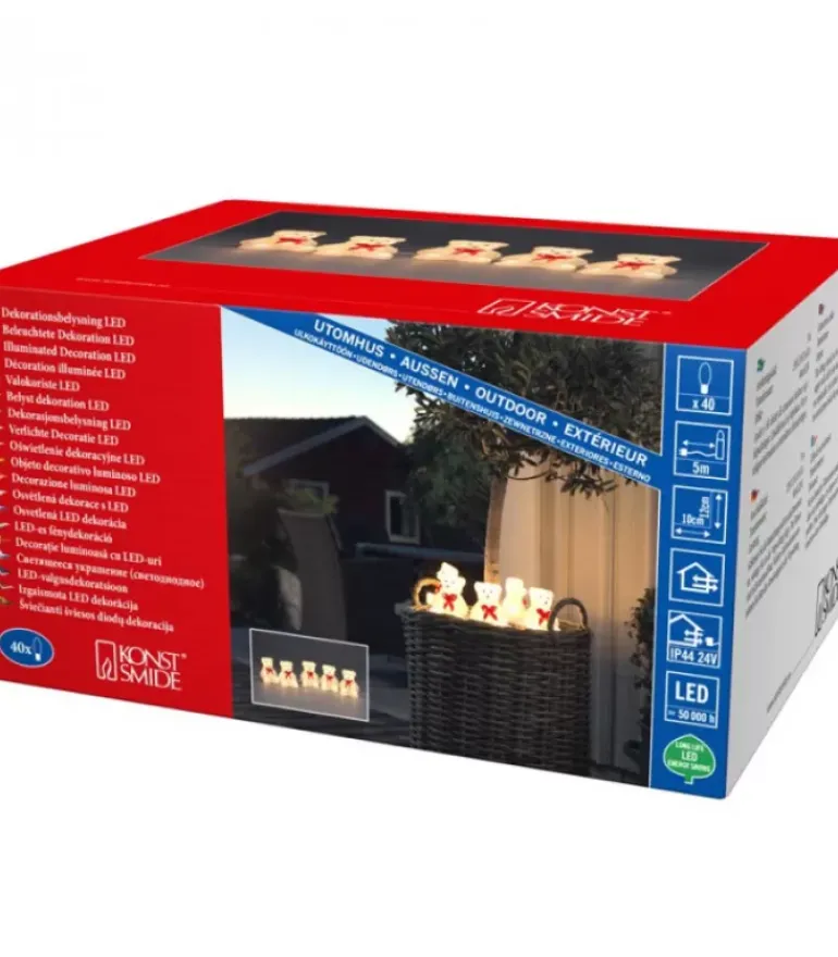 Lots De 5 Petits Oursons Lumineux A Led En Acrylique Avec Ruban Rouge, 40 Diodes Blanc Chaud.