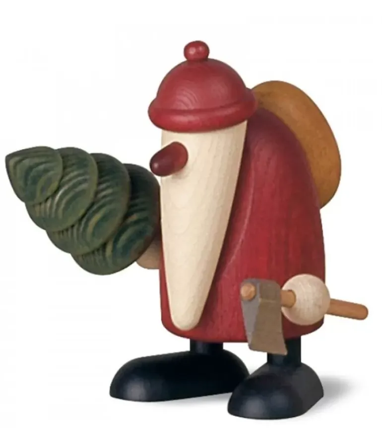 Père Noël En Bois Avec Sapin Sous Le Bras