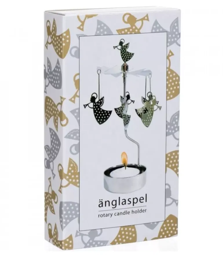 Photophore De Noël Anges Et Trompettes En Metal Chrome.