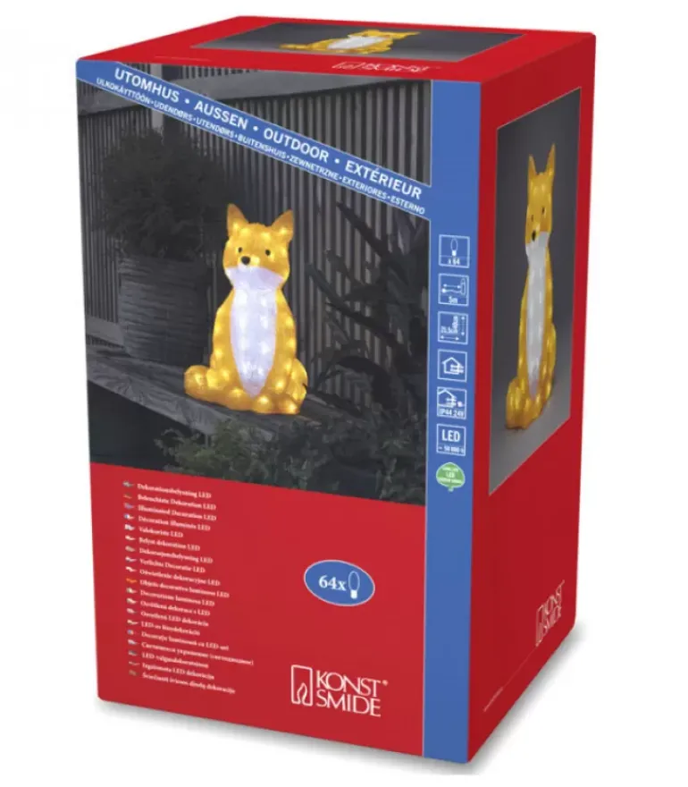 Renard A Led En Acrylique, 64 Diodes Blanc Froid, Taille 40 Cm.